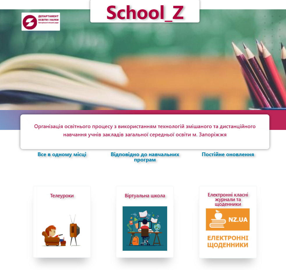 Розклад уроків Школа ONLINE Нормативні документи Організація навчання за очною формою зі змішаним режимом Поради для учнів, вчителів, батьків Адміністративний контроль