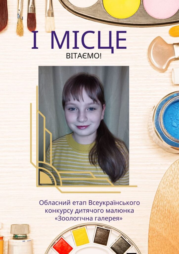 Вітаємо Манжос Поліну з перемогою у конкурсі “Зоологічна галерея”
